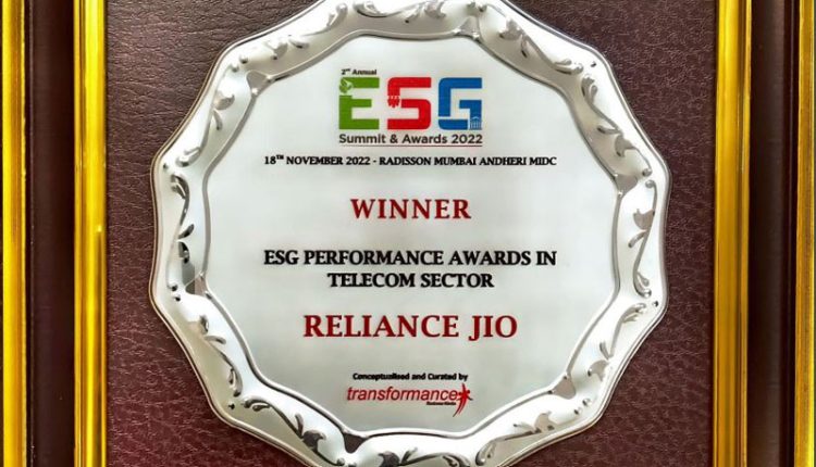 Mumbai : Reliance Jio has bagged the award for Environmental Social and Governance (ESG) performance in the Telecom sector at the 2nd ESG Summit and Awards event organized by Transformance Forums in Mumbai.