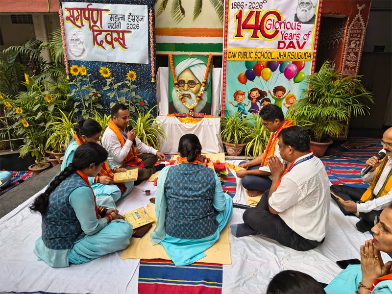 Jharsuguda: The 163rd birth anniversary of prominent educationist of Arya Samaj, social reformer, and key pioneer of the DAV educational movement, Mahatma Hansraj and Samarpan Divas was observed with great reverence and enthusiasm on the Jharsuguda DAV premises. The program was organized under the chairmanship of the school Principal, Laxmi kanta Debta. At the beginning of the ceremony floral tributes were offered to the portrait of Mahatma Hansraj, remembering his invaluable contributions. A Havan was also conducted on the school premises.