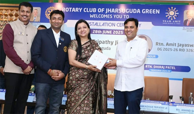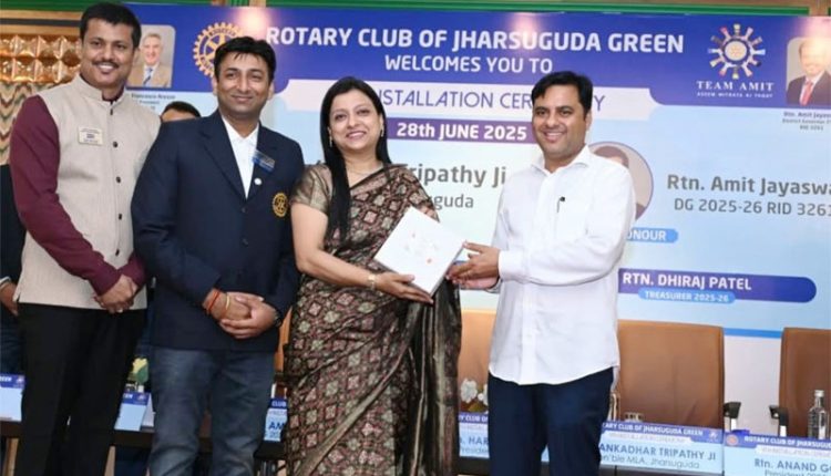 Jharsuguda, June 28: The Rotary Club of Jharsuguda Green marked a significant milestone with the successful celebration of its 4th Installation Ceremony at Hotel Mayfair on Saturday. The event witnessed the formal induction of Rtn Anand Goel as the new President for the Rotary year 2025–26, along with Rtn CA Amit Agrawal as Secretary and Rtn Dhiraj Patel as Treasurer.