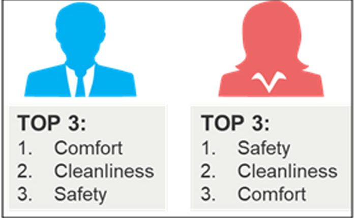 Safety tops the charts for women while Comfort is most important for men while travelling