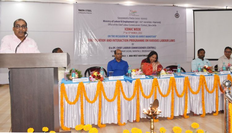 JODA, (Kalinga Voice) : As part of the ongoing Iconic week of Azadi Ka Amrit Mahotsav under the aegis of Ministry of Labour and Employment, Government of India,the office of Dy. Chief Labour Commissioner (Central), Bhubaneshwar organized a sensitization and interaction program for workers and employers located in Joda mining belt on 11th March 2022 at Joda West Auditorium, Tata Steel Limited, Joda.