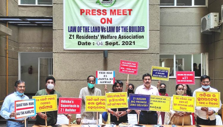 Bhubaneswar (Kalinga Voice) : Serious allegation of unlawful, arbitrary, unilateral and fraudulent acts has been brought by the Z1 Residents’ Welfare Association(Z1RWA), an association of apartment owners of Z1 Project developed by Z Estates Pvt Ltd (ZEPL) adjacent to Nandankanan Road, Patia . The association staged potest and raised serious allegation and gross violation of rules agaist the builder in a press meet .