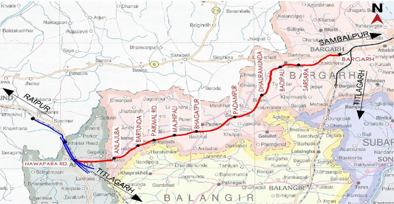 The Proposed Stations in this route are _ Bargarh Road (Existing), Sarsara, Dumerpali, Bijepur, Badipali, Dhauramunda, Padampur, Bhagatpur, Majhipali, Paikmal Road, Bartunda, Anlajuba, Nuapada Road.