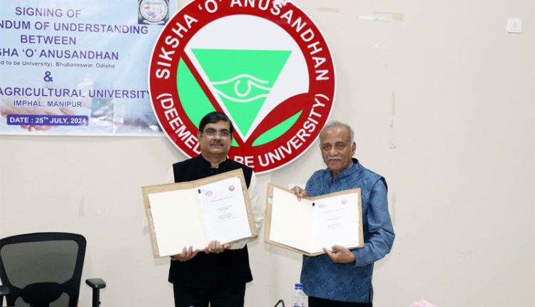 Bhubaneswar, July 26: Siksha ‘O’ Anusandhan Deemed to be University (SOA) on Thursday signed a Memorandum of Understanding (MoU) with Central Agricultural University (CAU), Imphal, for undertaking academic, research and outreach collaborations including in the area of climate resilient farming.