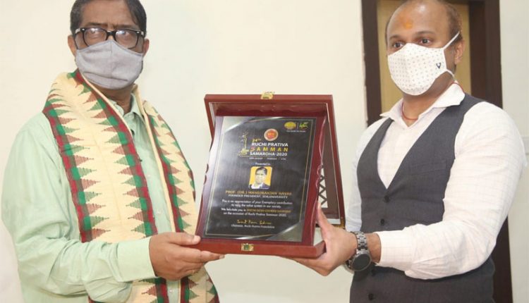 The award, instituted by Ruchi Prativa Foundation, Cuttack, was presented to Prof. Nayak by Mr. Sarat Kumar Sahoo, Chairman of the Foundation, earlier while a webinar was organized to mark the occasion.