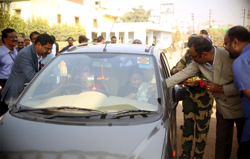Senior officials of the university, led by the Chancellor Prof. D.P. Ray, presented yellow roses to the students not wearing helmet or not using seat belt while red roses were given to those obeying the safety rules. Chocolates were given to girl students.