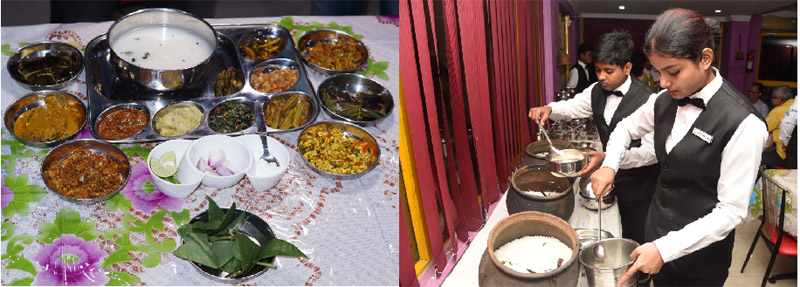 The guests are being treated to ‘Usuna Pakhala’, ‘Arua Pakhala’, ‘Dahi Pakhala’, ‘Ada Pakhala’, ‘Chhunka Pakhala’ and ‘Lembu Pakhala’ accompanied by an assortment of vegetarian or non-vegetarian side dishes.