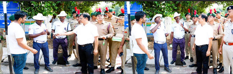 Bhubaneswar, April 23: NCC cadets and NSS volunteers of Siksha ‘O’ Anusandhan Deemed to be University (SOA) on Tuesday reached out to the policemen engaged in law and order duty and traffic control in Bhubaneswar city in the scorching heat with ORS packets and water bottles.