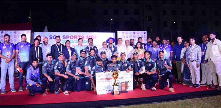 SOA clashed with CV Raman Global University in the cricket final which ended in an exciting tie. Batting first, SOA scored 91 for 8 off 12 overs while CVRGU could make 91 for five off the allotted overs. SOA managed to sneak to victory in tie-breaker.