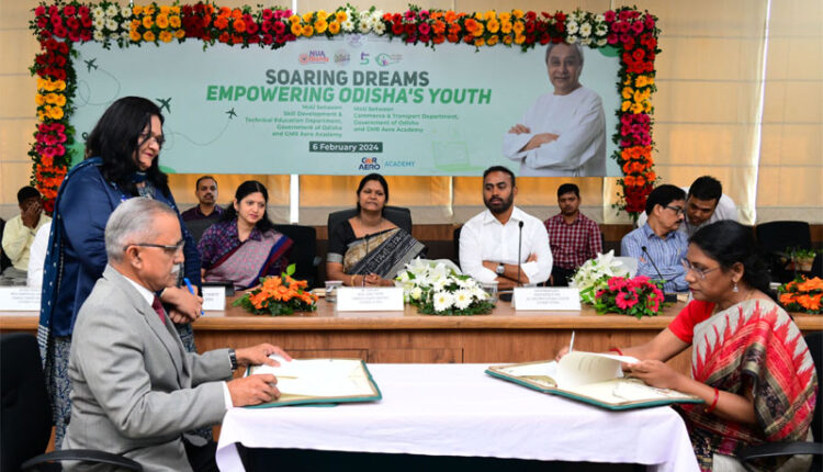 Bhubaneswar (Kalinga Voice): Under the visionary leadership of Chief Minister, Shri Naveen Patnaik, Skill Development and Technical Education Department and Commerce and Transport Department are collaborating with GMR Aero Academy (GMRAA) to extend the aviation related skilling to youth of Odisha. Accordingly, a Memorandum of Understanding (MoU) is signed between Directorate of Aviation, Directorate of Skill Development cum Employment with GMR. This ceremony was graced by Hon’ble Minister Commerce and Transport Smt. Tukuni Sahu and Hon’ble Minister Skill Development and Technical Education Shri Pritiranjan Gharai, and other dignitaries.