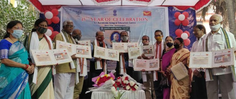 It is said that Late Sadhu Charan Patanaik was popularly known as Civil Engineer, a yogic being , a spiritual person as well as a spiritual writer. He was a pioneer in spreading of the ideal and  the philosophy of The Mother and Sri Aurobindo .He dedicated in the installation of Relics Centre of Sri Aurobinao at Auyodhya(UP) and Brahmapur(Odisha) and he dedicated his  life in the Engineering wing of Aurovil  (Pondichery) .He was interested in collection of postal stamps at the age 16 till the age of 80yrs and known as a senior philatelist and in touch with the postal department of Pondichery. He has written several books on The Mother and Sri Aurobindo philosophy and literature. He  passed away on 4th  October 2020. As the origin from Brahmapur of Ganjam distict and a versatile personality, SriAurobindo Intgral Education Centre, Gosaninuagawn, Brahmaur feel proud to dedicate a postal cover in the memory of Late Sadhu Charan Patnaik on his 95th Birthday celebration yesterday. All the teaching staff, senior citizens, intellectuals and public attend this function following the  Covid 19 protocols.
