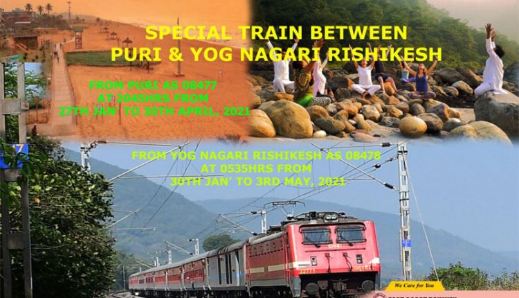 Bhubaneswar (Kalinga Voice) : It has been decided to run special train between Puri & Yog Nagari Rishikesh during Mahakumbh Mela at Haridwar.