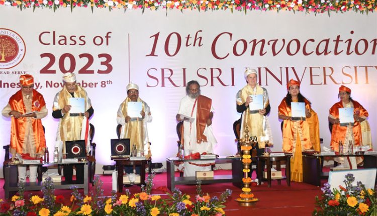 Cuttack: Sri Sri University observed its 10th Convocation Ceremony, on 08th of November 2023.It is a matter of great honour for Sri Sri University that, Gurudev Sri Sri Ravi Shankar, global spiritual leader, the founder and the lifetime president of Sri Sri University graced the occasion with his seraphic presence which magnified the grandeur of the annual concur in many folds. The Chief Guest for the momentous occasion was Shri Atanu Sabyasachi Nayak, Honourable Minister, Department of Higher Education, Food Supplies and Consumer Welfare, Cooperation, Government of Odisha. The guest of honour for this significant occasion was Mr. Jo Leinen, Former member of European Parliament.
