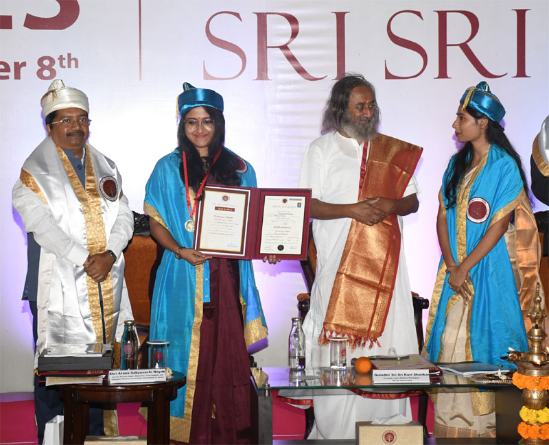 The honoris causa was conferred to three dignitaries namely, Padma Bhusan Vaidya Devendra Triguna, Padma Shri Sudarshan Pattnaik, a renowned international sand artist, Padma Shri and Arjuna awardee Shri Dilip Kumar Tirkey, President of Hockey India. This year Sri Sri University conferred degrees on five Ph.D. awardee along with 640 postgraduates and undergraduates. The Ph.D. awardees are Dr. Guruprasad Dash, Dr. Nivedita Roy, Dr. Sipra Ram, Dr. Gopikrishna Panda and Dr. Monalisa Patel.