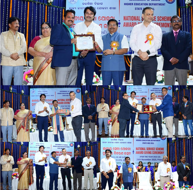 20 volunteers, program officers, NSS units have been awarded for their outstanding contribution in areas such as blood donation, tree plantation, health awareness, literacy, disaster management, road safety, drug prevention, Swachh Bharat Abhiyan to make this youth scheme more effective. Besides, the NSS Bureau of Bahanga Higher Secondary School and AIIMS Bhubaneswar were felicitated for their exemplary service in the Bahanga train accident and about 300 volunteers, program officers and coordinators from 23 universities attended the award ceremony.
