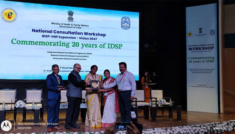 Bhubaneswar 04/11/2024:– The State Surveillance Unit, Integrated Disease Surveillance Project (IDSP), Odisha has been honoured for its excellent work in public health surveillance in the 20-year commemorative event of IDSP held in New Delhi.