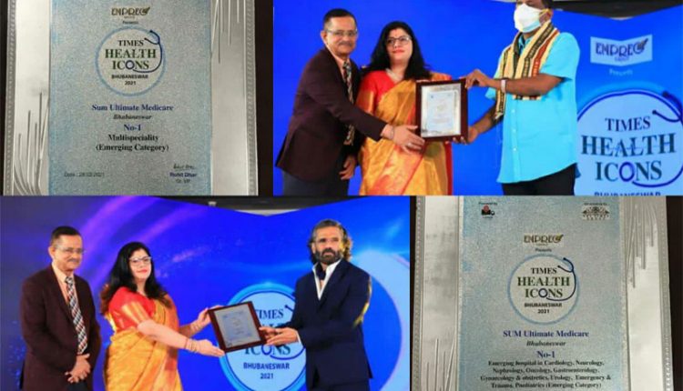 Bhubaneswar(Kalinga Voice) : SUM Ultimate Medicare (SUMUM), the one-stop, next generation, multi-superspecialty, quaternary care hospital which came up in the Odisha capital a year ago, has emerged as the number one hospital in the emerging category in eastern India in the Times Health Icon award ceremony held here on Sunday.