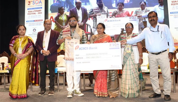 The SOA Yuva Sahitya Purashkar, instituted this year, was presented on the occasion to young writer Mr. Suryasnata Tripathy for his collection of short stories titled ‘Thia Puchi Naranga’.