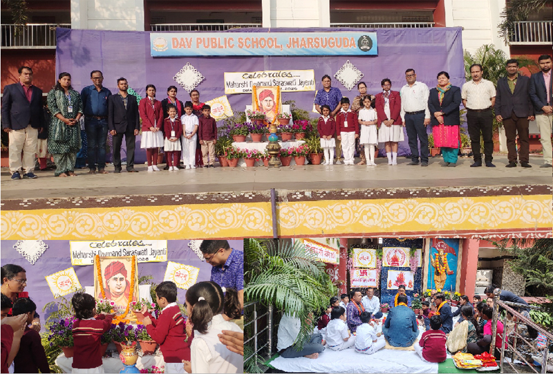 Jharsuguda, 12/02/2026: The 203rd birth anniversary of Swami Dayanand Saraswati—the great helmsman of the DAV movement, the architect of Vedic renaissance, the founder of DAV, and the founder of Arya Samaj—was celebrated with great enthusiasm and solemnity on the DAV Public School, Jharsuguda premises.. On this grand occasion, in the chairmanship of the school Principal, Laxmi kanta Debta, floral tributes were offered to the portrait of Swami Dayananda, and heartfelt homage was paid to the revered saint. Retired Professor from IGIT, Sarang, Dhenkanal and LMC member of Nimapara DAV Dr Manoj Kumar Dash attended the occasion as the Chief Guest and joined the havan organized for peace and welfare of the world. In his welcome address, the Principal Shri Debta highlighted the invaluable contributions of Swami Dayanand Saraswati—one of the foremost philosophers, social reformers, and propagators of the Vedas of India’s renaissance era—towards Indian culture. He elaborated on Vedic truth, moral values, modern scientific education, national thought, the message of “Back to the Vedas,” the DAV educational movement, the harmony of modern science-based education with Vedic ethics, the inspirational ideals of Swamiji, women’s education and equality, reverence for nature, opposition to idol worship, resistance to superstitions, and above all, his struggle against social evils and blind practices. Teacher Padmasan Sahoo presented a reading on the life and works of Swami Dayanand. Alekh Bihari Sahoo, Neelima Patel, S.K. Serajuddin, Pabitra Mohan Kabi, Nityananda Sahu, Pramod Nath, Sarita Mishra, Monika Srivastava, Anamika Rani, Sukanya Mahapatra, Manisha Chand, Sunanda Praharaj, Ankita Sahu, Smita Sahu along with all the teachers of the school, were present and contributed to the successful conduct of the programme.