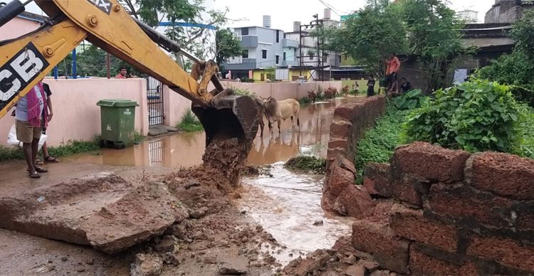 Similarly, drains were cleared and temporary diversion made near Maa Santoshi Temple at Chharichhak to Jagannath Ashram Road in Badagada. The drain encroachments by house owners blocking free flow of rainwater were removed by the engineering wing of BMC at Bomikhal area following strict instructions from the authorities.