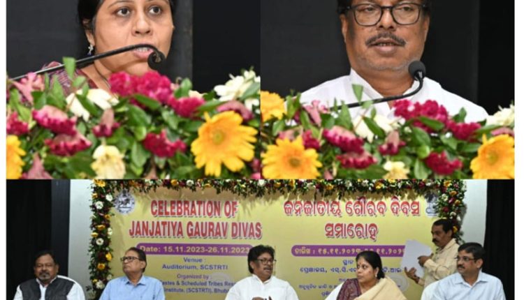 Bhubaneswar:The tribal youth to be made aware of the tribal freedom fighters and their stories, hence in all schools and GPs the department take initiative to make available such content. The tribal language, culture, costume speaks of their uniqueness and all stakeholders are responsible for its preservation and promotion. Shri Sudam Marndi, Minister, School and Mass Education and Revenue and Disaster Management Department has expressed the opinion that tribal are bringing glory to the state and country in all fields. On the occasion of Janjatiya Gaurav Divas, the valedictory ceremony of the two-day Tribal Poets Meet organised at the Scheduled Castes, Scheduled Tribes Research and Training Institute (SCSTRTI) has been held. Shri. Marndi urged upon youth to participate more and more in such platforms which celebrate tribal identity. Tribals have a long history and their association with ecology, forest, is sacred and core to the tribal culture.