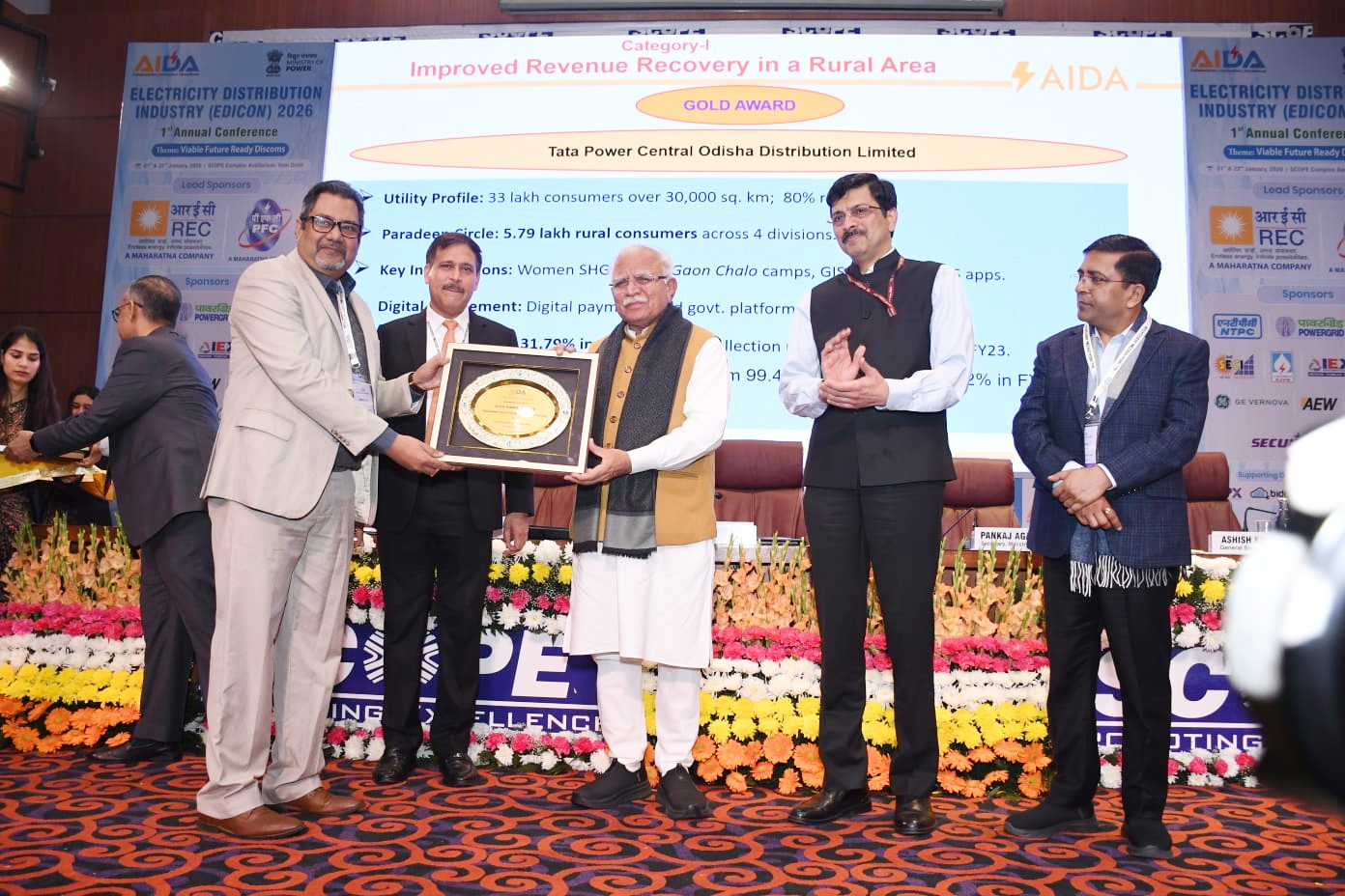 Bhubaneswar, January 22, 2026: TP Central Odisha Distribution Limited (TPCODL) has been conferred with the AIDA Gold Award for “Improved Revenue Recovery in a Rural Area” at the EDICON 2026, held in New Delhi.