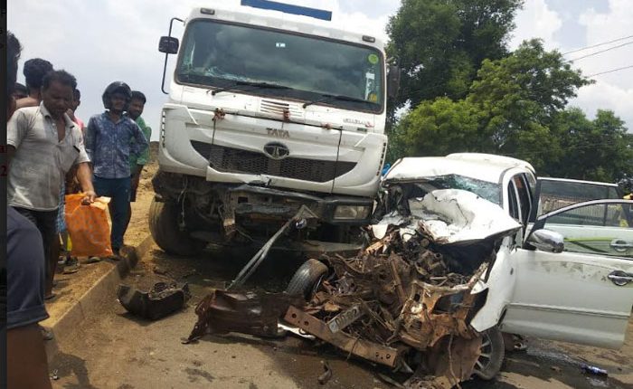 Badbil/KVB : A 16-wheeler collided head-on with an Innova vehicle in Naradpur on Wednesday morning, killing driver Penu Mahakud and injuring three others. The injured were immediately admitted in the Tata Company Hospital in Joda, From where they were air lifted to Bhubaneswar by helicopter and a plane from Tonto Airport in Bhadrasahi. The accident was so severe that the fire department was forced to evacuate the driver. The driver died On the spot and others were rescued by locals. The dead driver’s home is in a state of disrepair. Police arrived at the scene, confiscated the truck, and arrested the driver.