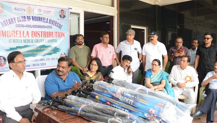 ROURKELA,(Basanta Kumar Jena):- on behalf of Rotary Club of Rourkela River Side 300 Umbrellas distributed to the post operated Catract patients at Hi-Tech Medical College and Hospital. This is the 2nd big project during the period of President Rtn S. N. Jyotishi.This programme is initiated by past president Rotarian Dr. P. C. Mahapatra and nicely managed by Vice-Pesident Rotarian Pratima Mahapatra.