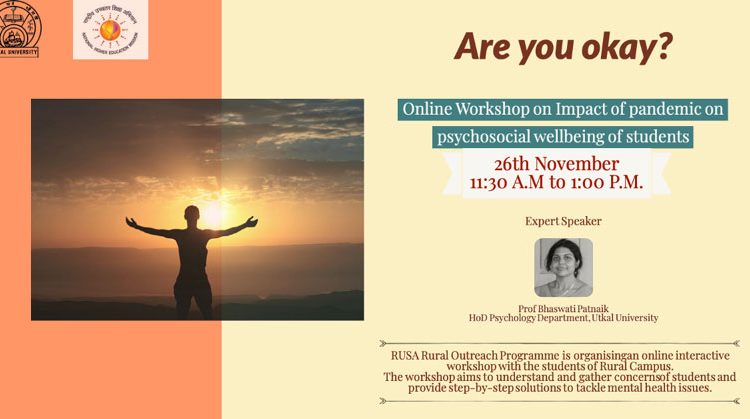 The world is facing the biggest calamity of this century and it has created a road that’s not easy for anyone to travel. It is a trying time especially for students with educational institutions remaining shut for more than eight months and with no clarity on the reopening. They also had to suddenly cope up with the new form of online classes. With an aim to help students combat issues related to mental helath, the Rural Outreach programme, set up under RUSA 2.0 who is actively working in the Chandikhol campus, organised this workshop.