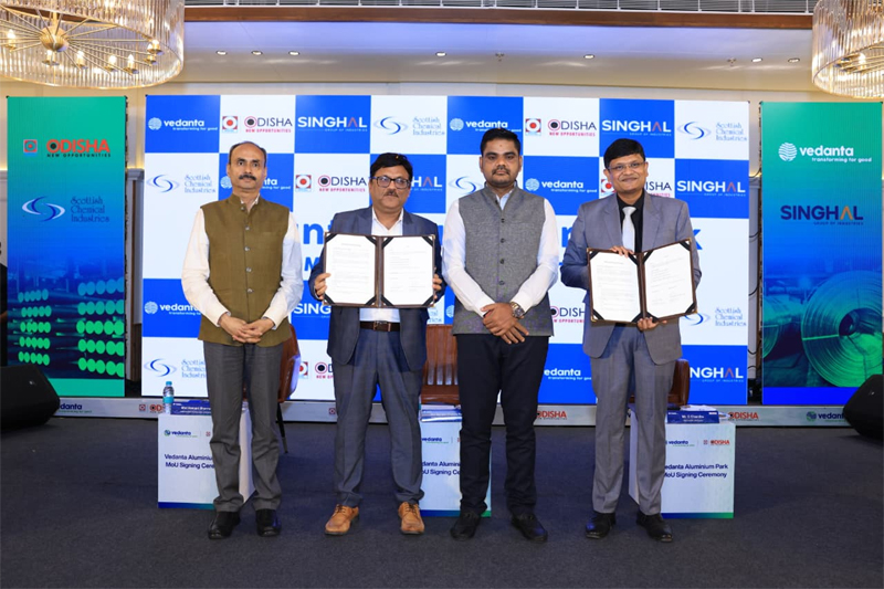 Bhubaneswar, Odisha, 10th April 2026: Vedanta Aluminium, India’s largest producer of aluminium, has signed a Memorandum of Understanding (MoU) with two leading manufacturing companies, Singhal Steel & Power Pvt. Ltd (a unit of Singhal Group Of Industries) and SCOT-AL Metcon Pvt. Ltd. (an associate company of Scottish Chemical Industries and UAL Industries) for setting up their downstream aluminium manufacturing facilities within the upcoming Vedanta Aluminium Park in Jharsuguda, Odisha.