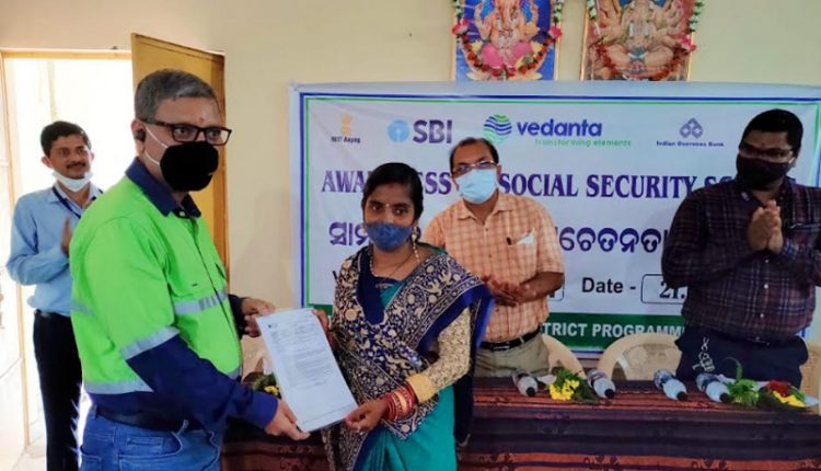 Lanjigarh(Kalinga Voice) : Vedanta Limited, Lanjigarh, India’s premier producer of metallurgical grade alumina, is working towards inclusion of underprivileged sections of the society in Social Security Schemes by the Government of India, under NITI Aayog’s Aspirational Districts Program.With the objective of sensitizing communities living in remote areas on schemes like Pradhan Mantri Jeevan Jyoti Bima Yojana (PMJJBY) and Pradhan Mantri Suraksha Bima Yojana (PMSBY), Vedanta has been conducting awareness sessions on the benefits of utilizing these schemes.
