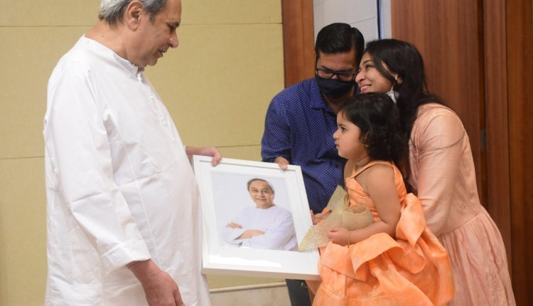 This evening, Anvi, along with her mother Anuradha Dalmia Agrawal, met Chief Minister Shri Naveen Patnaik at Naveen Niwas and presented her unique paintings to Chief Minister.