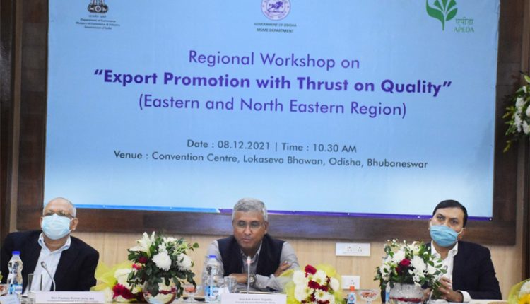 Bhubaneswar(Kalinga Voice) : The Regional Workshop on Export Promotion with Thrust on Quality for the Eastern and North East Region was organized on dt.08.12.2021 in the State Convention Centre, Lokseva Bhawan, Bhubaneswar by MSME Department, Government of Odisha in collaboration with Department of Commerce, Government of India. Dr. M. Angamuthu, IAS, Chairman, APEDA, New Delhi is the coordinator of the workshop. The theme of the workshop was District Export Hub, Quality Production, GI, Trade Infrastructure for Export Scheme, Quality and Standard.