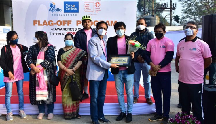 On the occasion of World Cancer Day, Odisha’s leading multispecialty health care institution Apollo Hospital organized a mega cyclothon and a series of various other programmes to spread awareness about the deadly disease. The Cyclothon was flagged off by Shri. Sudhir M. Diggikar, Regional CEO of Apollo Hospitals Enterprise Limited in presence of Dr. Ashish Chandra, Director Medical Services, Ms. Swagatika Acharya, Cancer Survivor and the Founding and Managing Director of Awaaken, Mrs. Sarita Mishra, Delivery Centre Head-Tata Consultancy Services, Bhubaneswar and Mr. Sabyasachi Mishra, eminent cine-artist and social activist. More than 200 participants joined the cyclothon and travelled around 15 km across the city to spread awareness about prevention, care and treatment of Cancer.