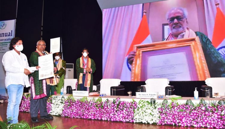 Bhubaneswar (Kalinga Voice) : Kalinga Institute of Social Sciences (KISS) Deemed to be University, Bhubaneswar, celebrated its first convocation ceremony in virtual mode on 27th June 2021. Delivering the convocation address, Prof. Ganeshi Lal, Hon’ble Governor of Odisha congratulated the graduates and said that there is no dearth of talents in tribal communities. What needed is the right environment, encouragement and timely exposure. He exhorted the graduates to make the ‘Vocal for Local’ as their resolution and contribute to the successful making of ‘Aatmanirbhar Bharat’ through their participation and endeavours.