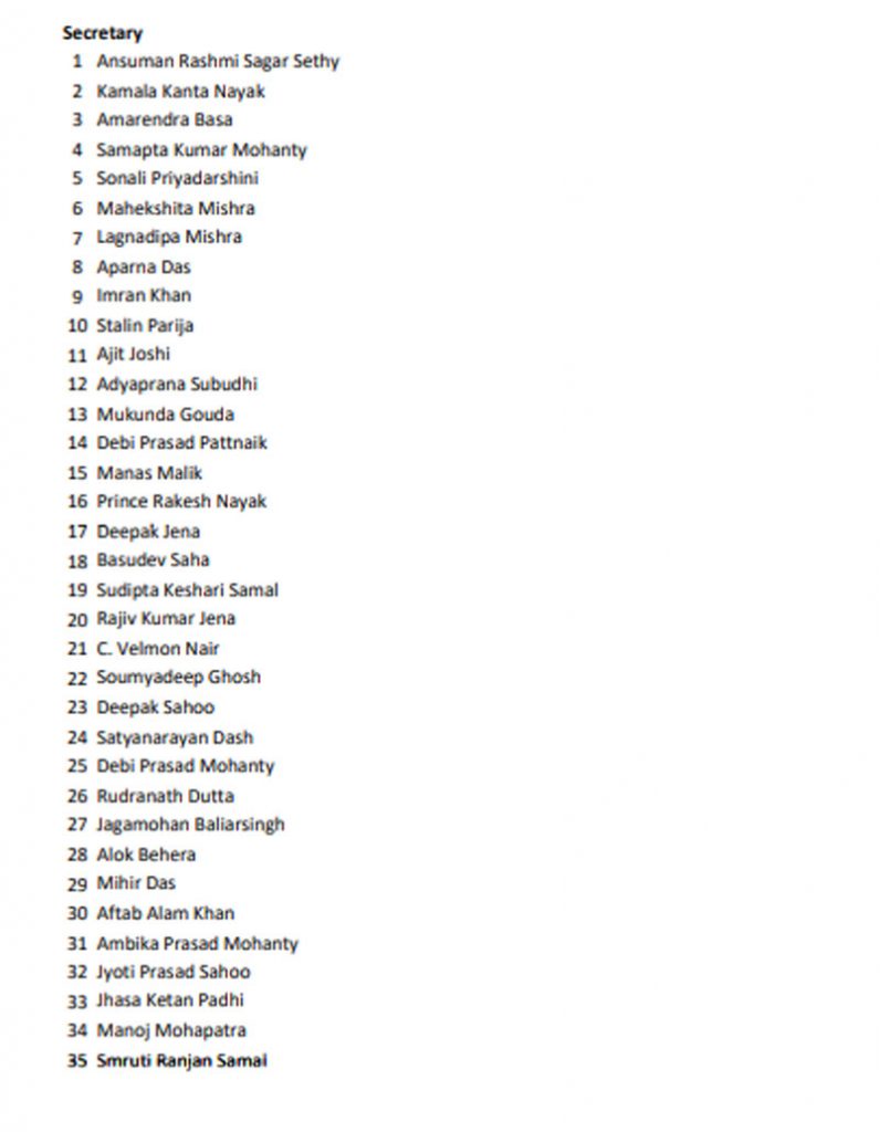 - Baikuntha Nayak Working President, Eleena Secretary General