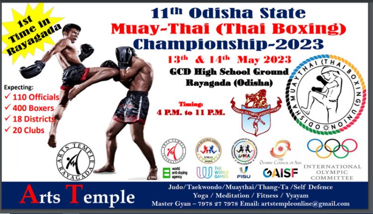 Bhubaneswar : The 11th Odisha State Muaythai Championship 2023-cum-Selection Trial of Odisha Team for upcoming UMAI National Muaythai Championship 2023, Chennai (India) will be organized at GCD High School Ground Rayagada (Odisha) on 13th& 14th May 2023.